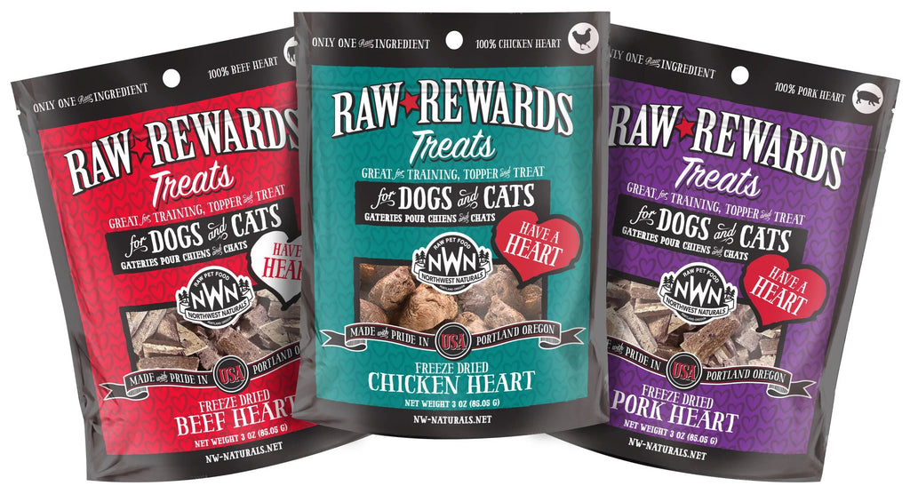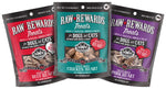 Puree Packets, Freeze-Dried, Dehydrated, Joint Support & Calming Treats. Most our our Treats are made with Duck, Chicken, Pork, Lamb, Beef, Bison, Tuna, Cod, Salmon, Green Mussels or Shrimp. Body parts like Hearts, Liver, Giblets, Rabbit Ears & others.