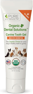 Dental Care is an important step in your dog’s grooming routine as dental disease can cause bad breath, painful infections, and costly vet bills. Our USDA Certified Organic tooth gel naturally cleans and freshens breath with organic sweet potato, cinnamon, papaya leaf extract and organic kelp. Rich in vitamins and amino acids, this tooth gel tastes great and doesn't contain any harmful sweeteners, chemicals, dyes, or preservatives.