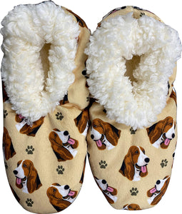 UNIQUE DESIGN: Basset Hound Slippers - Soft plush material, very comfortable, the artwork is done by one of the best artists in the country. COMFORT: These cute Basset Hound slippers you've been waiting for! They are made of a plush material. Very durable and comfortable. It’s like walking on clouds. Easy to put them on and off. NON SKID BOTTOM: These slippers have a non skid dots on the bottom - easy to move around your home. SIZE: These slippers come fit all women's shoe size 5 to 11 MACHINE WASHABLE: Our Comfies Slippers are machine washable. They will come out like new after every wash!