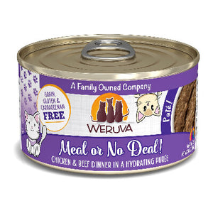 Weruva Cat Pate Meal or No Deal! Chicken & Beef Dinner in Puree Wet Cat Food is Your cat won't need to open a bunch of briefcases to take this prize home! Once this meal hits their food bowl, they'll eat up the tasty chicken and beef in this creamy paté, and meow, "no deal!"to anything else!
