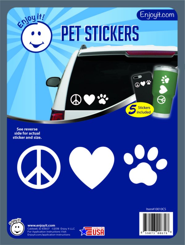 Peace, Heart & Paw Car Stickers by Enjoy it! Can go on your car, phone and any place that an adhesive sticker will work.