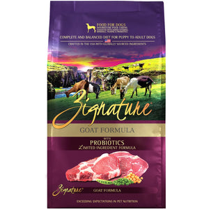 Deliver healthy nutrition in every bite with Zignature Goat Limited Ingredient Formula Grain-Free Dry Dog Food. Offering a unique and hypoallergenic protein option, it’s great for the pooch with allergies or food sensitivities while offering complete and balanced nutrition for every precious pup. With real goat meat as the very first ingredient, it’s loaded with protein and amino acids, and comes with a variety of health benefits that will keep him thriving—including unsaturated fats that help improve blood cholesterol levels, ease inflammation and stabilize heart rhythms. But he’ll just care about the great taste that keeps him coming back to the bowl again and again.
